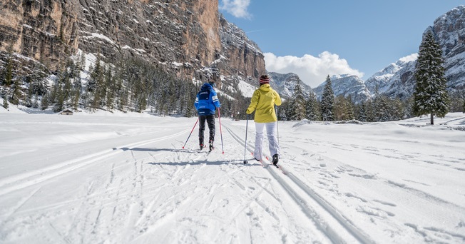Die Langlaufloipe erstreckt sich entlang des Ennebergtals, durch das Rautal, bis hin zum Pederü, ein 12 Km langes Naturerlebnis im Naturpark Fanes-Sennes-Prags, UNESCO Weltnaturerbe.